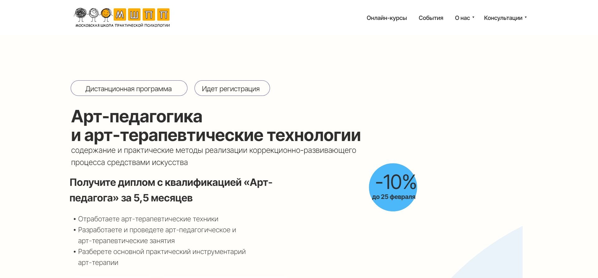 Этот промокод - ваш ключ к доступу не только к обширным знаниям и практическим навыкам в области арт-педагогики и арт-терапии, но и к экономии средств. Примените его при оформлении заказа, и ваша инвестиция в образование станет еще более привлекательной.