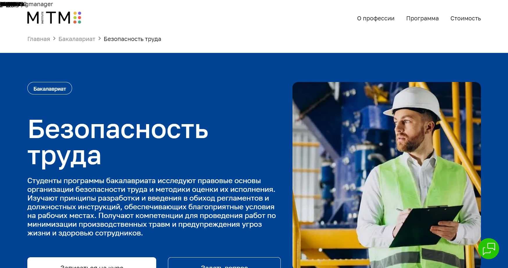 Программа поддержки куратора 24/7, государственный диплом и высокие стандарты образования делают Московский Институт Технологий и Управления привлекательным выбором для тех, кто стремится стать экспертом в области безопасности труда.