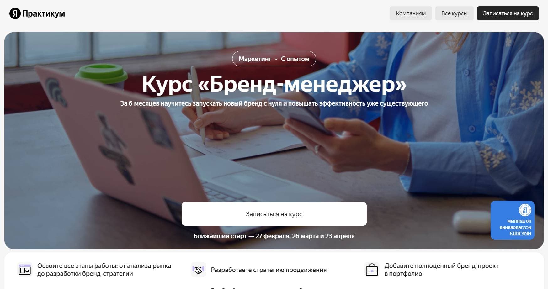 Выбрав Яндекс Практикум, вы выбираете не просто курс, а целый путь развития в профессии бренд-менеджера с поддержкой опытных наставников и практиков в этой области.