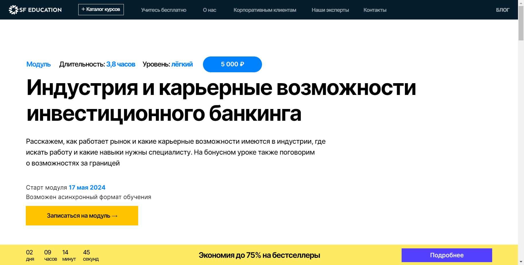 Вы можете получить существенную скидку на покупку курса «Индустрия и карьерные возможности инвестиционного банкинга» от SF Education, используя специальный промокод EDP2023. Этот промокод дает вам скидку в размере 60%, что делает обучение еще более доступным и выгодным.