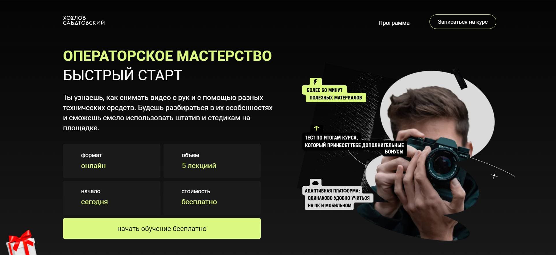 О курсе «Операторское мастерство. Бесплатно» от Хохлов Сабатовский