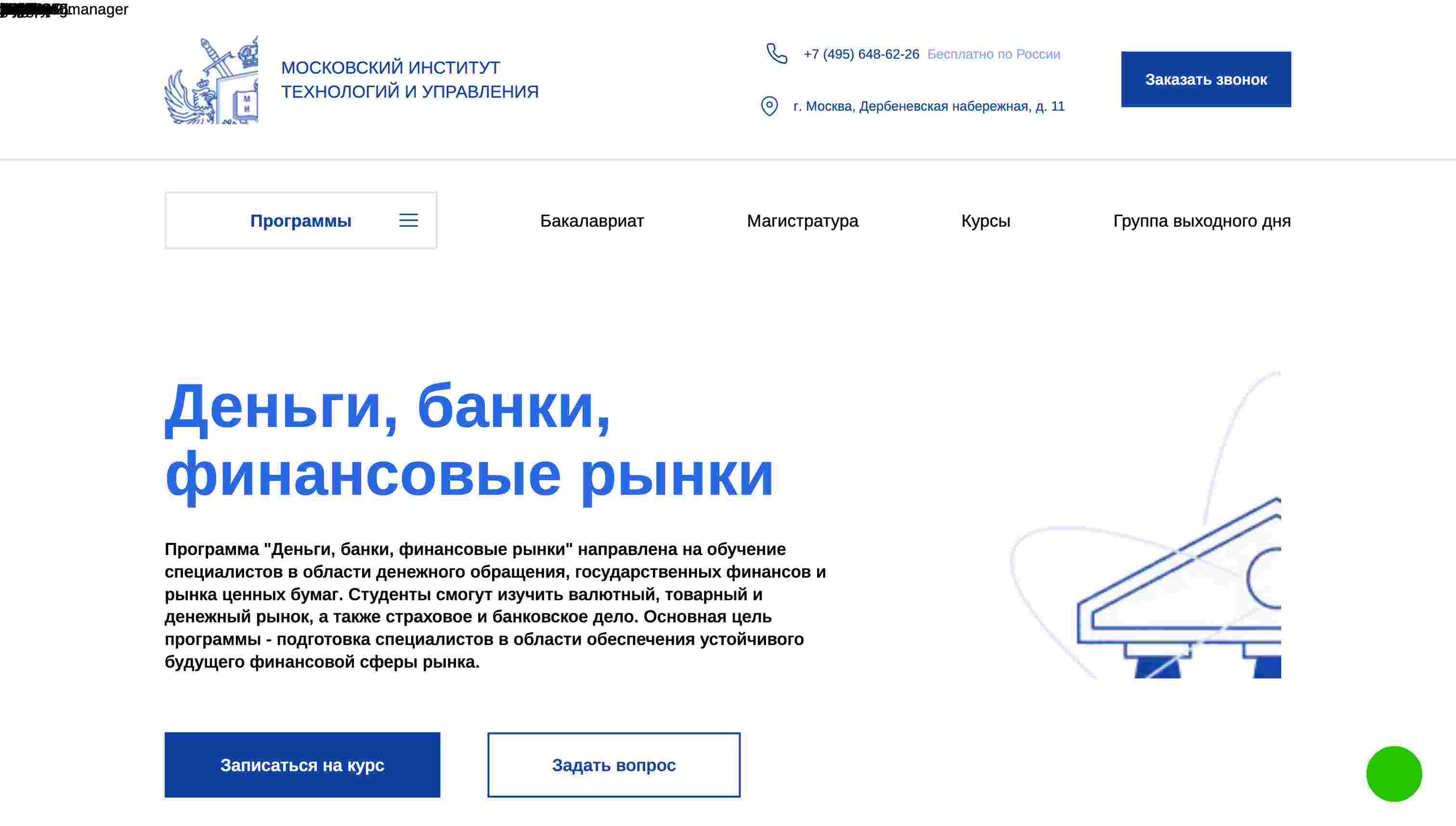 Не упустите шанс получить качественное образование по более выгодной цене. Мы ждем вас в Московском Институте Технологий и Управления, где вы сможете освоить все аспекты финансовых рынков и банковской деятельности под руководством опытных преподавателей.