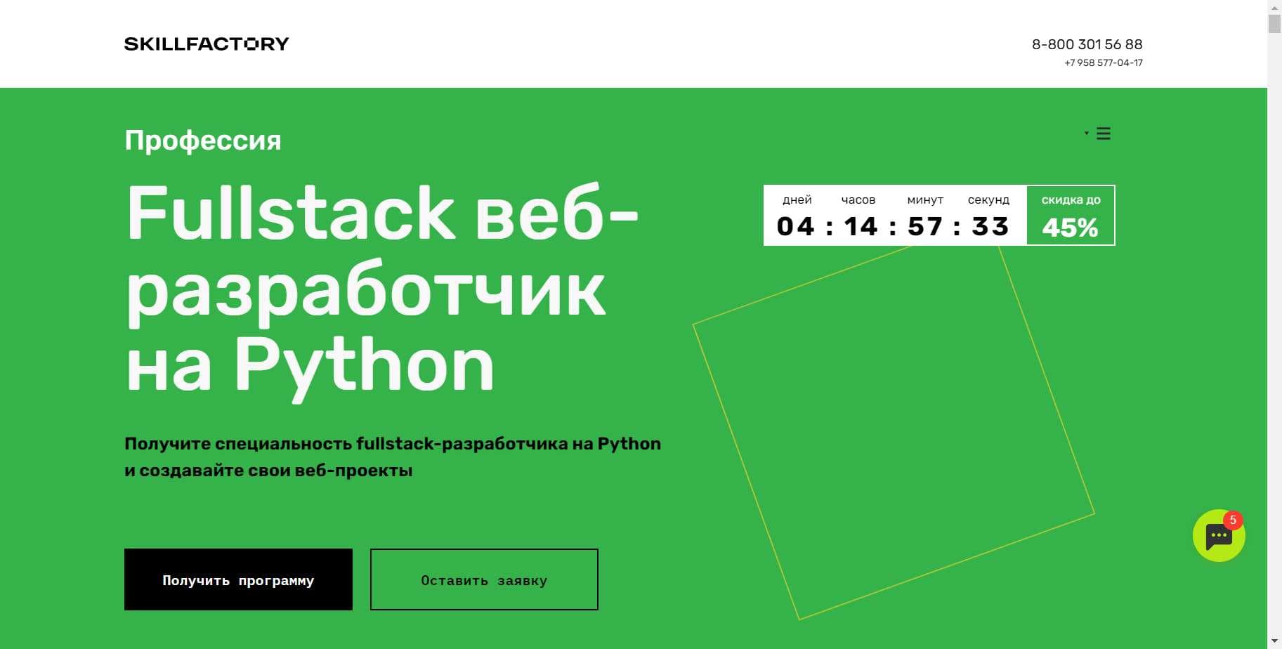 Ищите больше выгодных промокодов для «Fullstack веб-разработчик на Python» на Май 2024 на Сайте