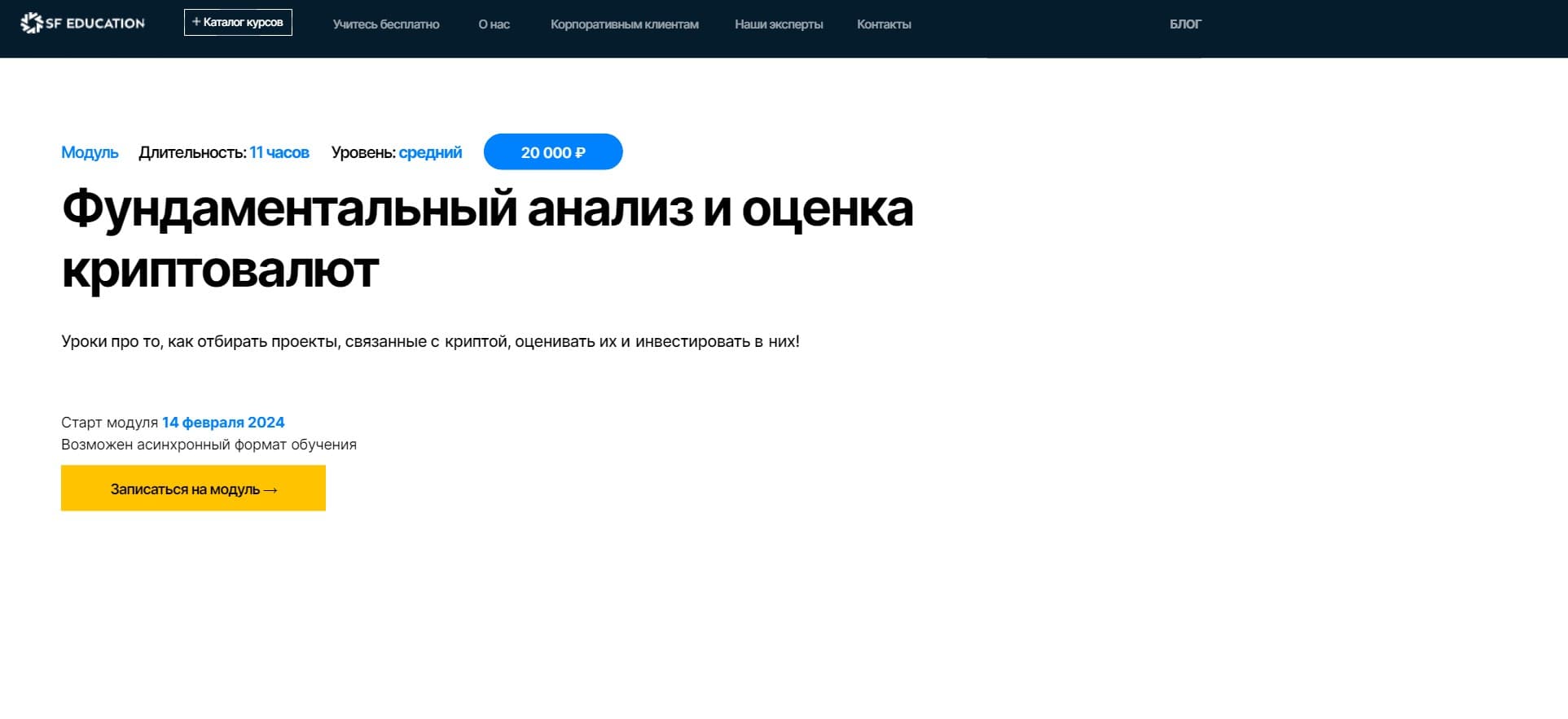 Вопрос: Какова продолжительность курса "Фундаментальный анализ и оценка криптовалют" от SF Education?