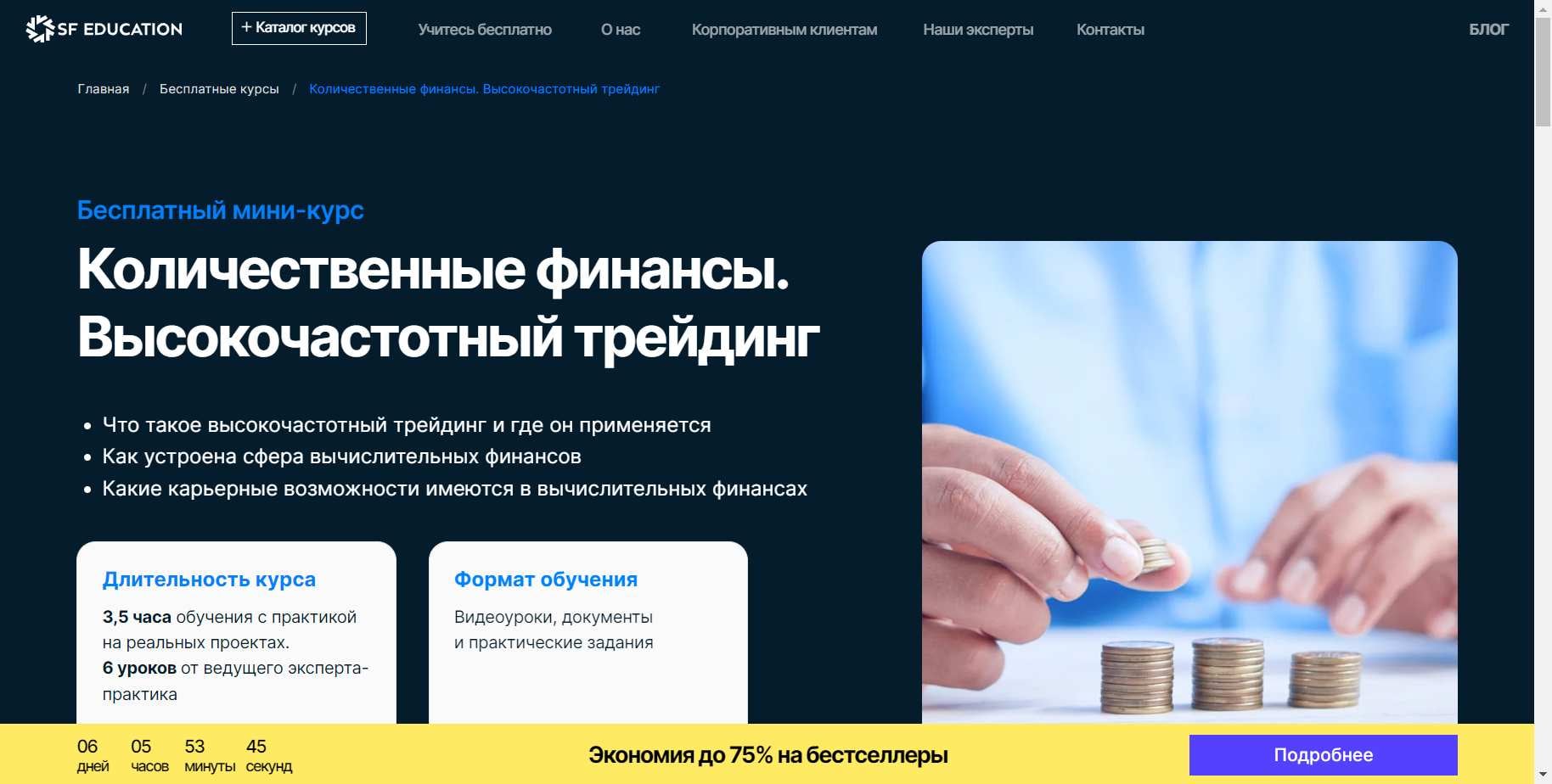 Преимущества курса «Количественные финансы. Высокочастотный трейдинг. Бесплатно»