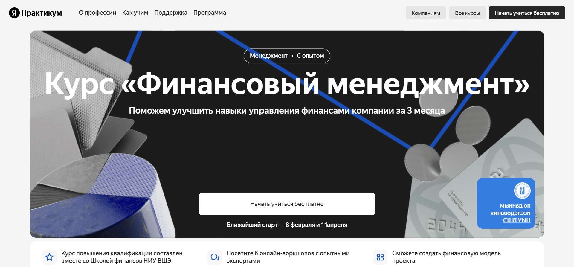 Погружение в мир финансового менеджмента начинается с первого дня обучения на курсе «Финансовый менеджмент» от Яндекс Практикум. Вас ждет увлекательное путешествие по основам управления финансами компании, где каждый этап обучения пропитан интересными финансовыми концепциями и практическими заданиями.