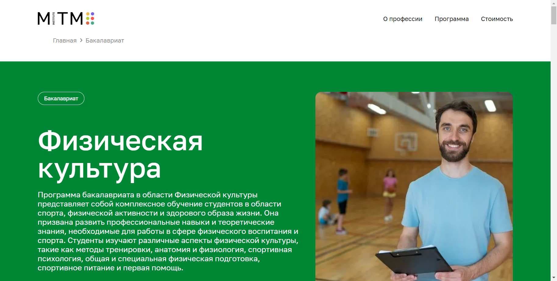 В целом, бакалавриат по физической культуре в МИТМ обеспечивает студентам качественное образование, готовит к профессиональной деятельности в сфере спорта и здорового образа жизни, а также предоставляет возможность для дальнейшего профессионального и личностного развития.