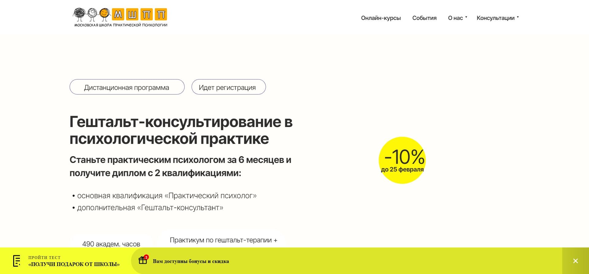 Приобретая курс по гештальт-консультированию в МШПП, вы можете воспользоваться уникальным промокодом, который даст вам скидку в размере 10% на обучение. Промокод KURSGID является специальным предложением для наших читателей блога и предоставляет отличную возможность сэкономить при получении качественного образования.