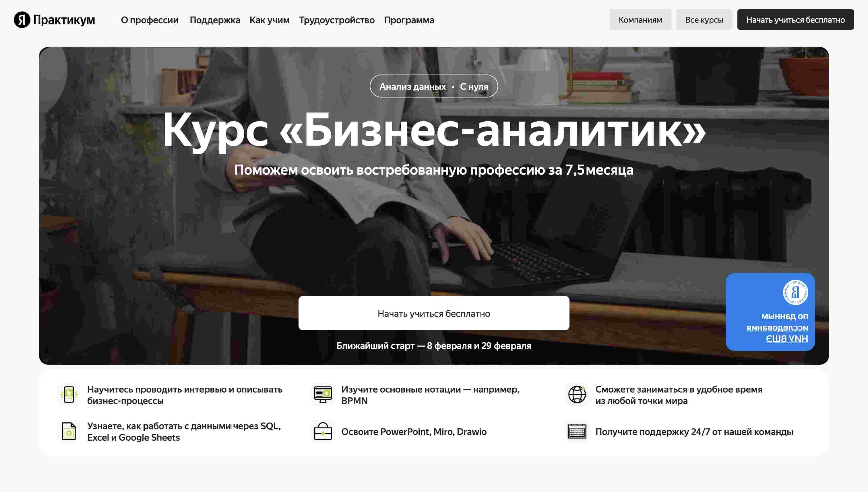 Добро пожаловать в захватывающий мир онлайн-обучения с курсом "Бизнес-аналитик" от Яндекс Практикум! Здесь вас ждет уникальная возможность освоить ключевые навыки бизнес-аналитика за всего лишь 7,5 месяцев дистанционного обучения. Наш курс предназначен для тех, кто стремится начать карьеру в области анализа бизнеса или переквалифицироваться в этой увлекательной сфере.