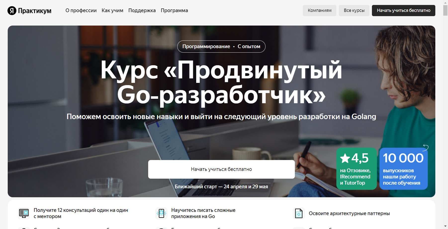 Курс «Продвинутый Go-разработчик» от Яндекс Практикума предлагает комплексное и качественное обучение для тех, кто стремится углубить свои знания в области Go и подняться на новый уровень профессионализма. Программа курса разработана с учетом потребностей работодателей и включает в себя практические задания, вебинары и индивидуальное менторство.