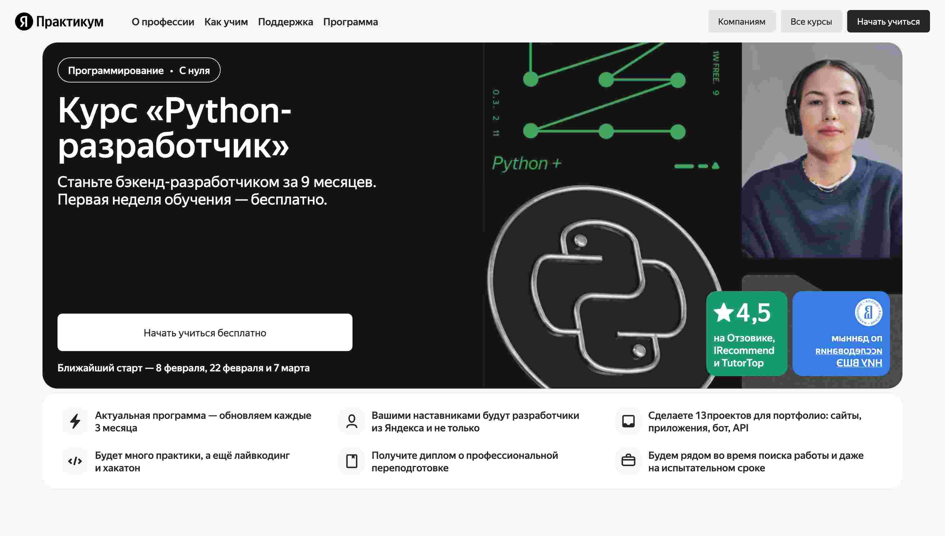 Я.Практикум - это место, где вы сможете получить качественное образование, научиться программировать на Python и начать успешную карьеру в IT-сфере.