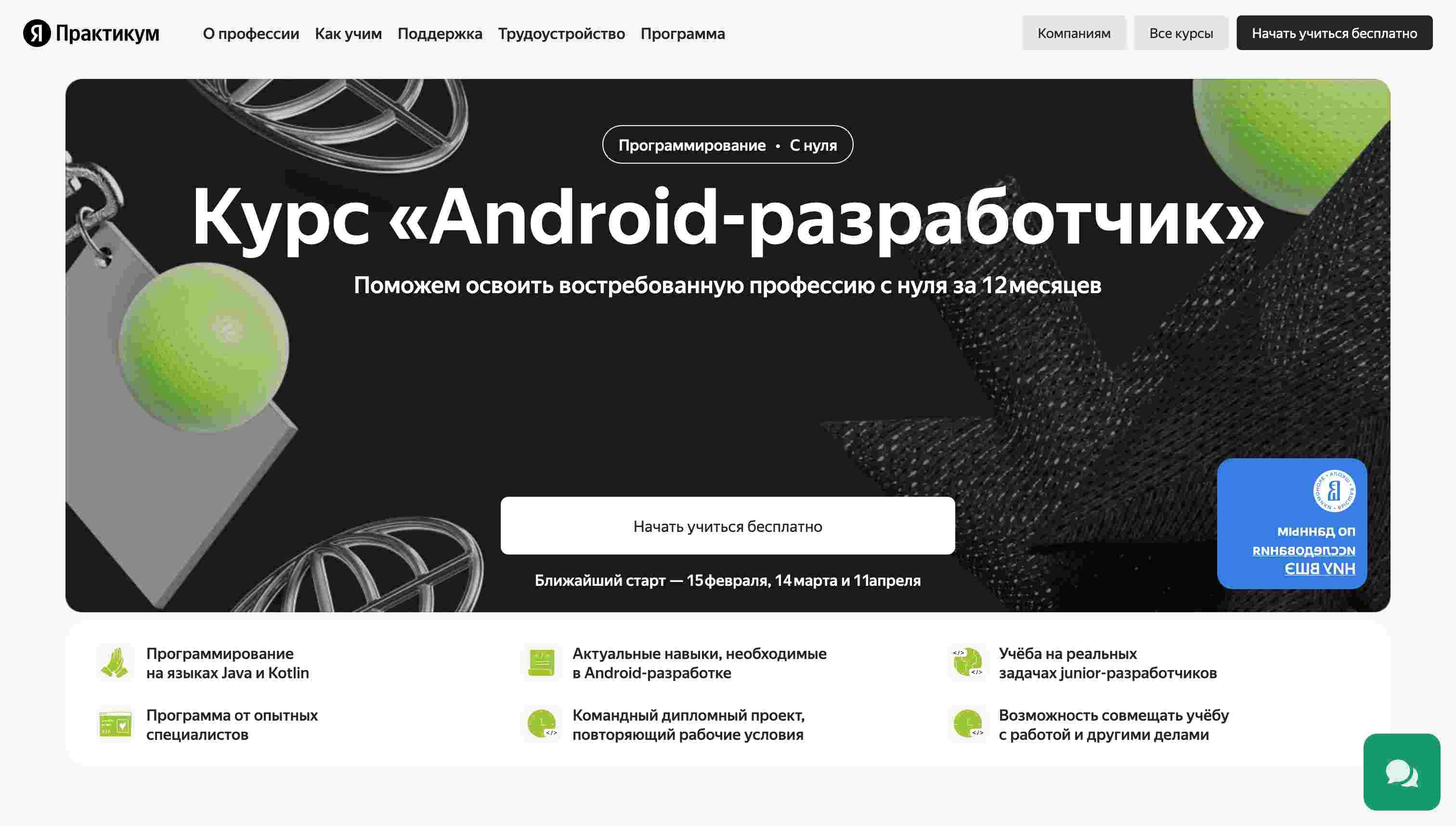 Курс охватывает широкий спектр тем, включая Java и Kotlin, библиотеки и инструменты, что позволяет студентам глубоко погрузиться в мир Android-разработки.