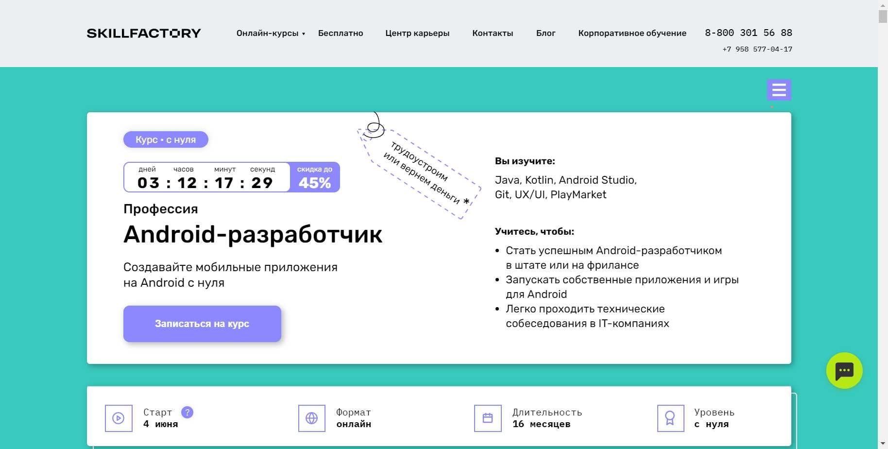 Для того чтобы получить скидку на покупку курса «Android-разработчик» от Skillfactory с использованием секретного промокода, следуйте простым инструкциям:
