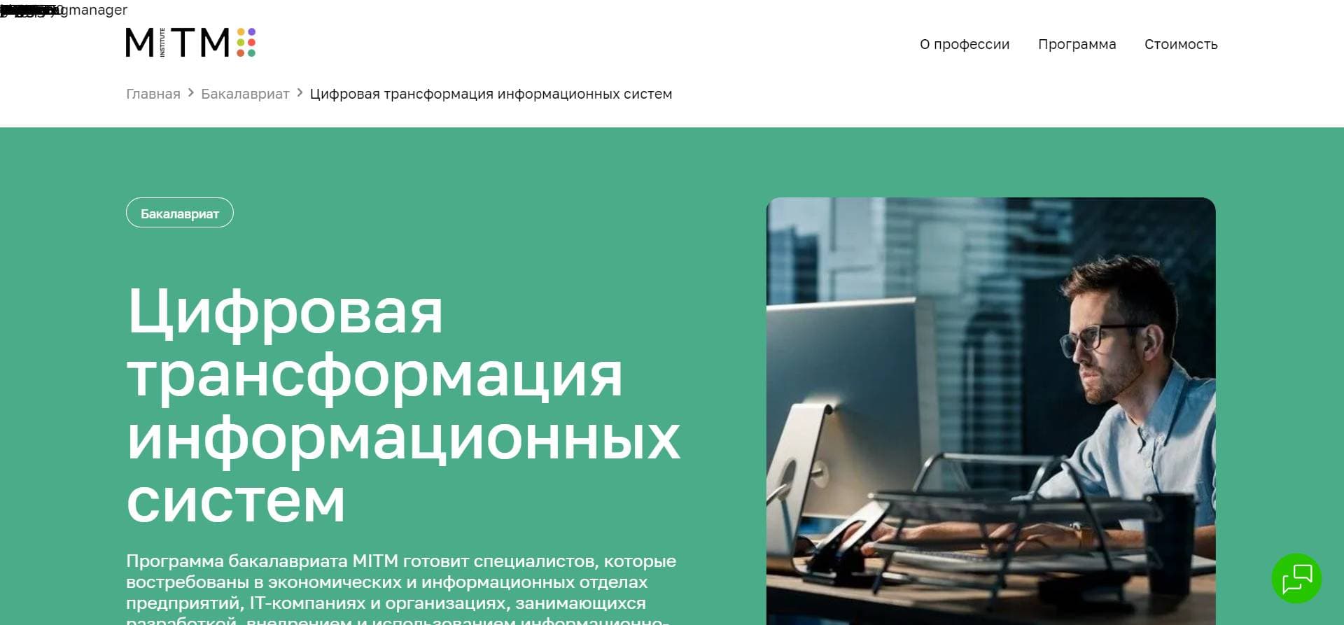 - Современная образовательная программа: Бакалавриат МИТМ оснащает студентов актуальными знаниями и навыками, необходимыми для успешной карьеры в сфере цифровой трансформации.