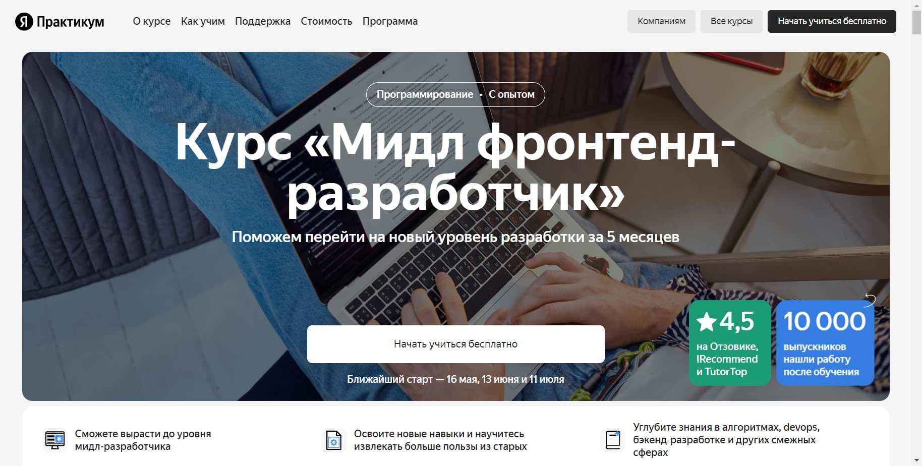 Больше специальных промокодов для «Мидл фронтенд-разработчик» на Май 2024 на Сайте