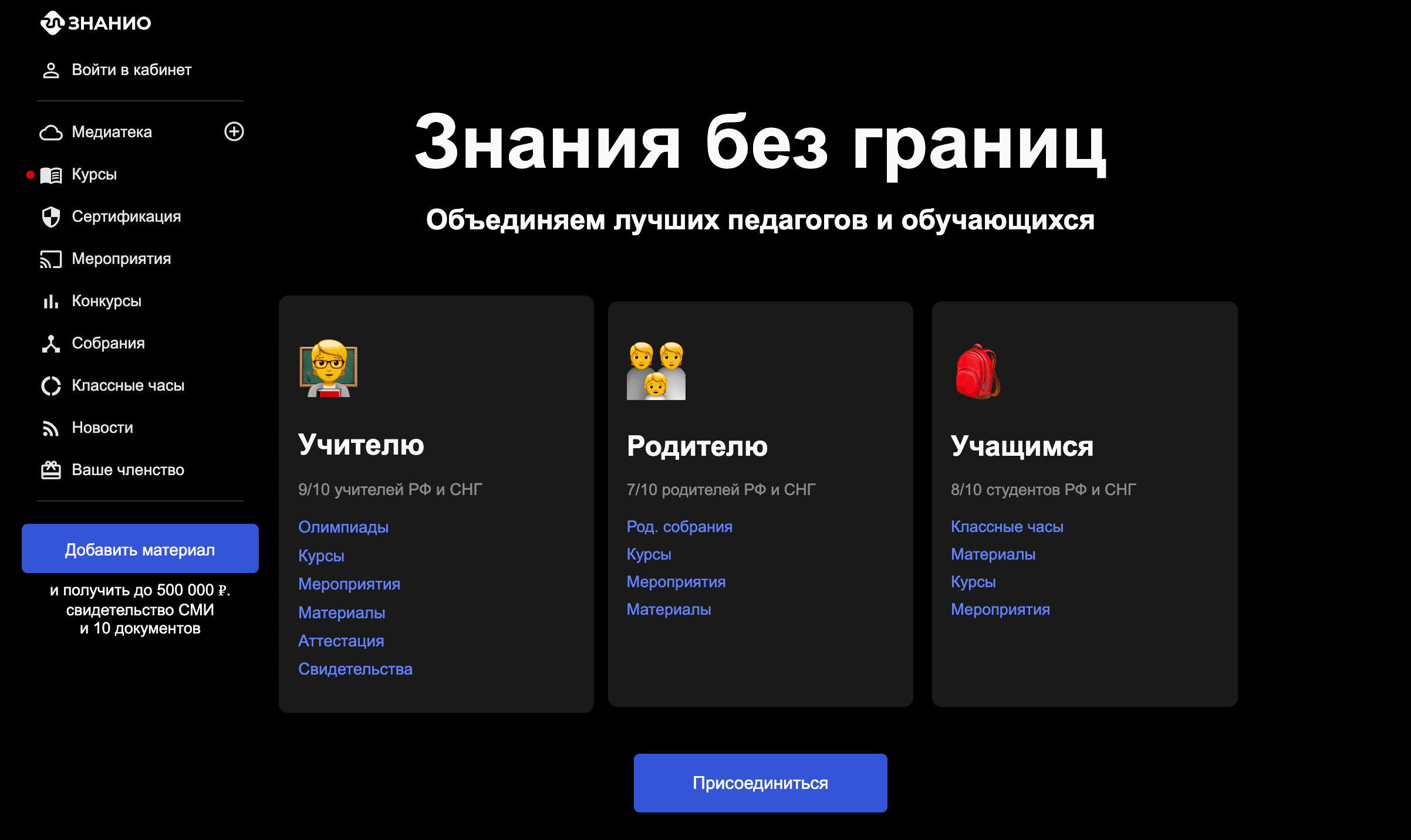 Знанио предлагает разнообразные образовательные программы и курсы, охватывая различные области знаний. Это позволяет учителям, родителям и студентам находить именно те курсы, которые соответствуют их потребностям.