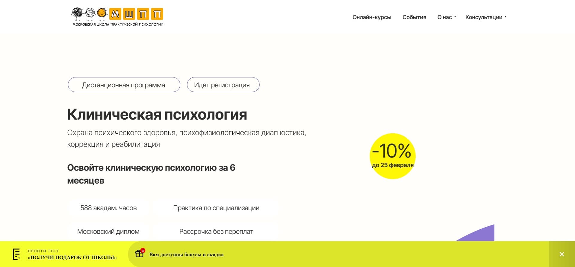 Хотите начать свой путь в области охраны психического здоровья, коррекции и реабилитации с дополнительными выгодами? Мы рады предложить вам уникальную возможность — скидку 10% на обучение по специальному промокоду KURSGID.