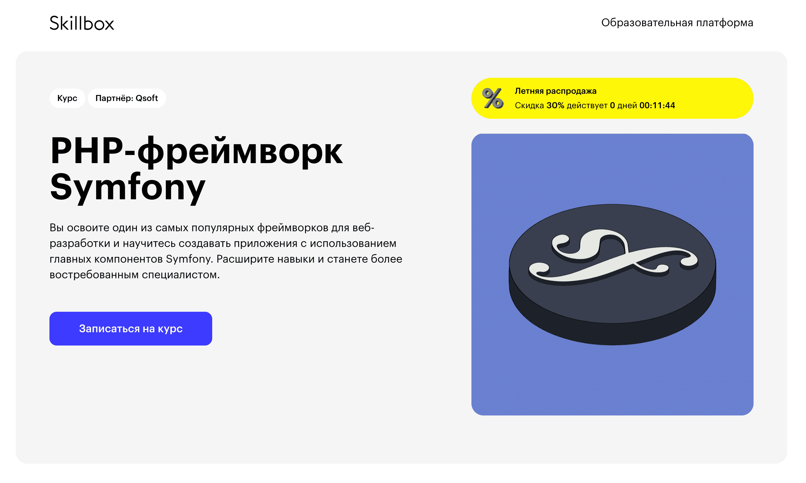 Курс "PHP-фреймворка Symfony" от Skillbox представляет собой онлайн-обучение, позволяющее освоить искусство создания веб-приложений и сайтов с помощью Symfony. Этот курс обеспечивает полный набор инструментов для разработки приложений на базе Symfony и предоставляет множество практических примеров для углубленного понимания и применения этих инструментов.