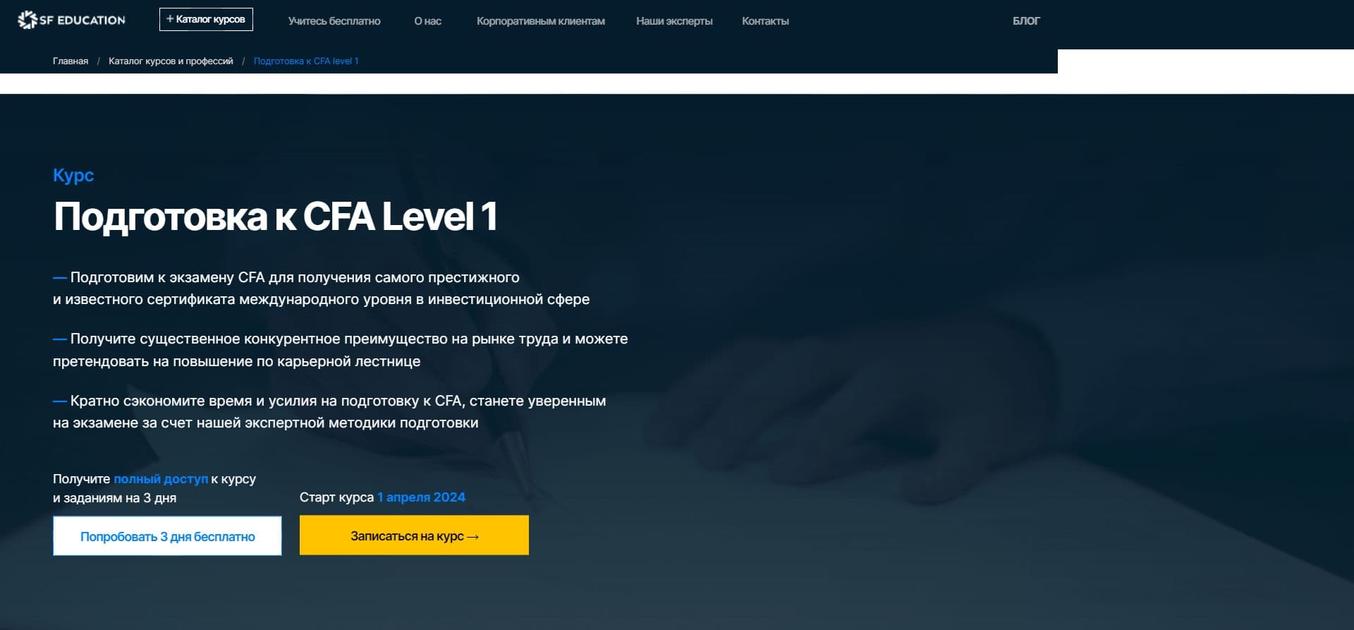 После внимательного рассмотрения курса "Подготовка к CFA Level 1" от SF Education можно выделить несколько ключевых моментов, которые могут быть важными для потенциальных студентов.