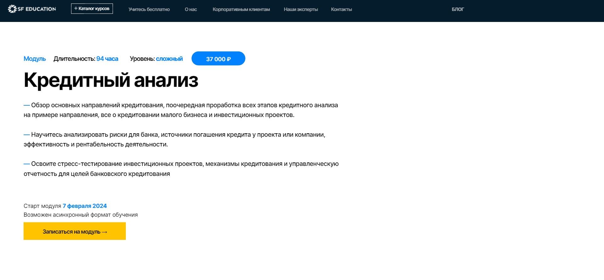 Вопрос: Какова продолжительность курса "Кредитный анализ" от SF Education?
