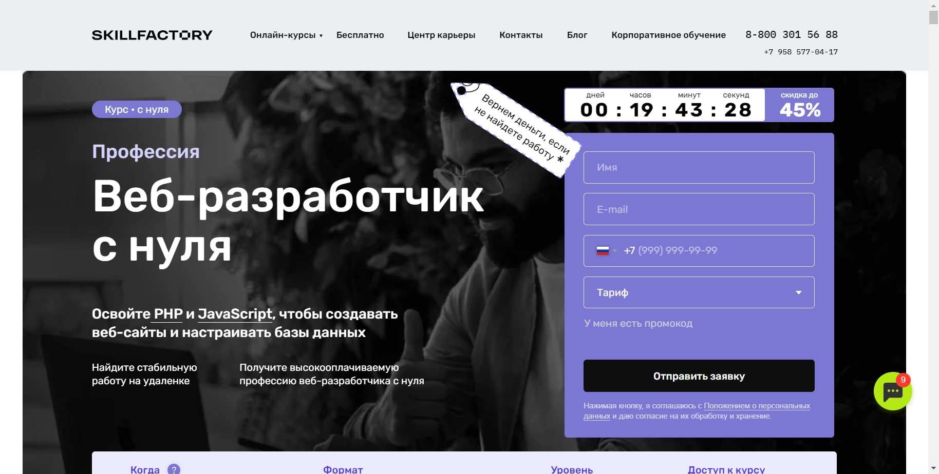 И нельзя не отметить гарантированный возврат денег, который предоставляет Skillfactory в случае, если студенты не найдут работу после прохождения курса. Это демонстрирует уверенность в качестве обучения и подтверждает комплексный подход к подготовке специалистов в сфере веб-разработки.