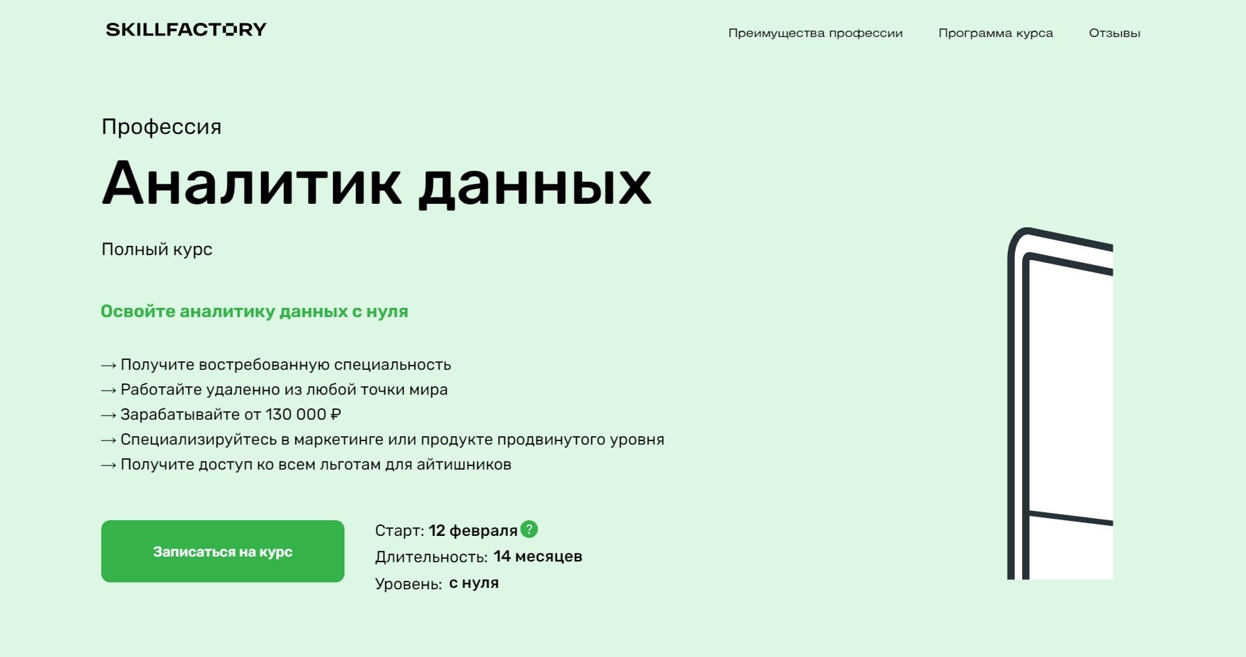 Таким образом, курс "Аналитик данных с нуля до ПРО" от Skillfactory заслуживает внимания тех, кто стремится освоить востребованные навыки анализа данных и успешно войти в индустрию.