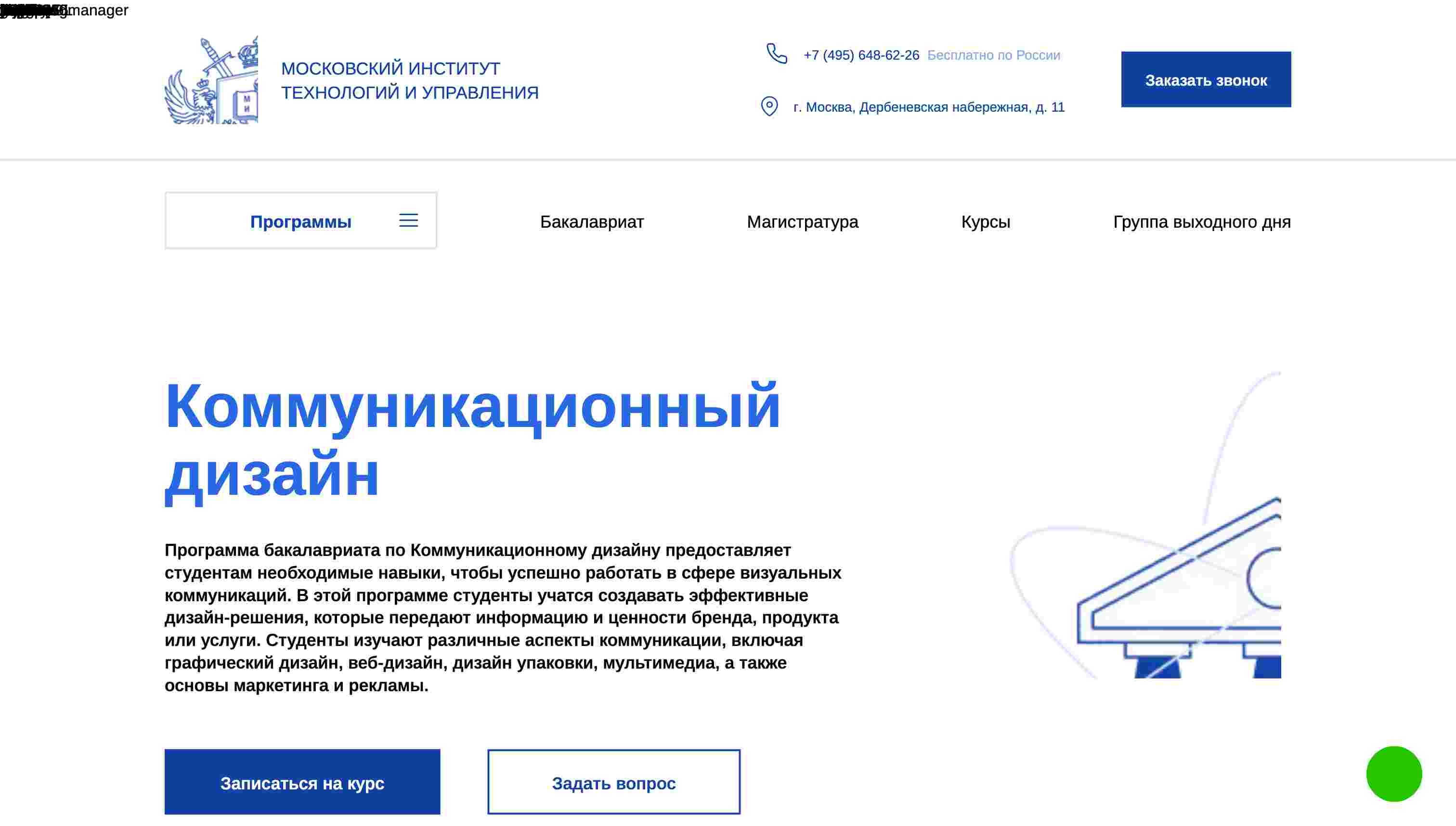 МИТУ предлагает широкий спектр образовательных программ, включая бакалавриат по Коммуникационному дизайну. Институт активно использует современные технологии для дистанционного обучения, что позволяет студентам из разных регионов получить качественное образование без необходимости переезда. Преподаватели МИТУ – это опытные специалисты и практики, что гарантирует актуальность и практическую ценность обучения.