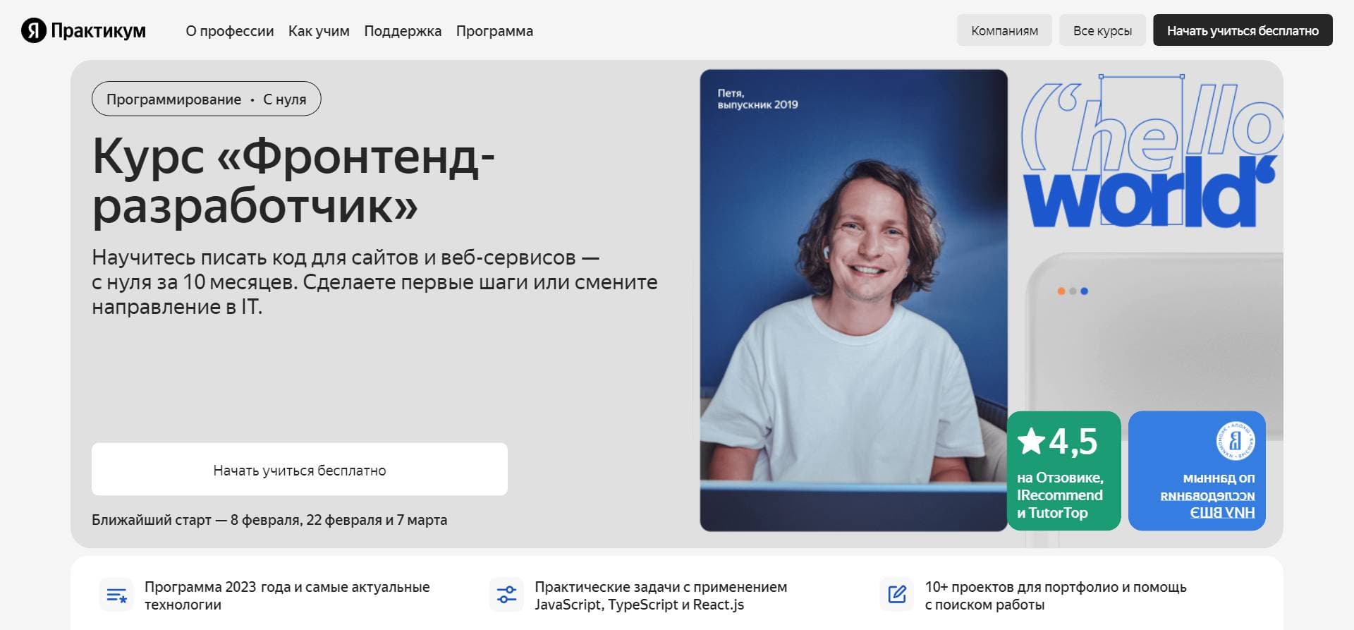 Я.Практикум предоставляет все необходимое для успешного обучения, поддерживая студентов на всех этапах учебы и даже после ее завершения. Это место, где обучение становится не только эффективным, но и увлекательным взлетом в мир фронтенд-разработки.