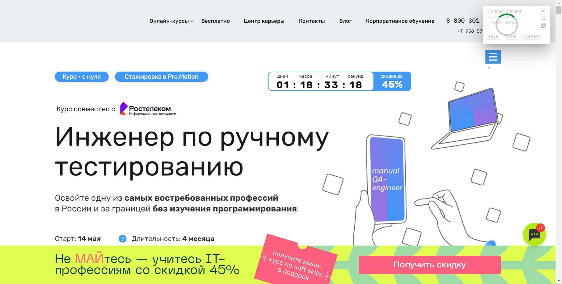 Еще больше специальных промокодов для «QA-инженер по ручному тестированию с нуля» на Май 2024 на Сайте
