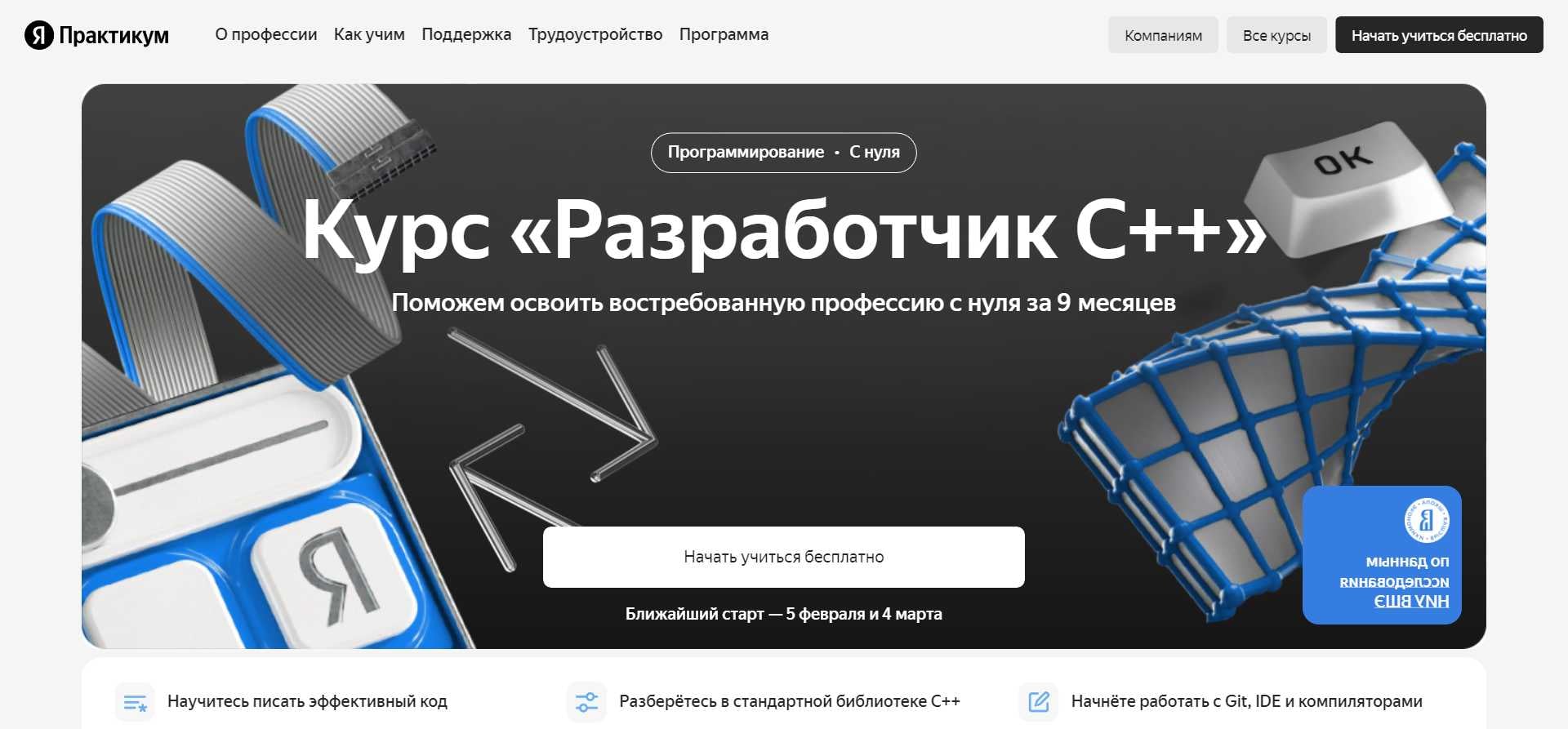 Всегда мечтали о карьере в разработке C++? Яндекс Практикум - ваш надежный партнер в этом путешествии! Наш онлайн-курс "Разработчик C++" предоставляет уникальную возможность освоить востребованную профессию с нуля за 9 месяцев.