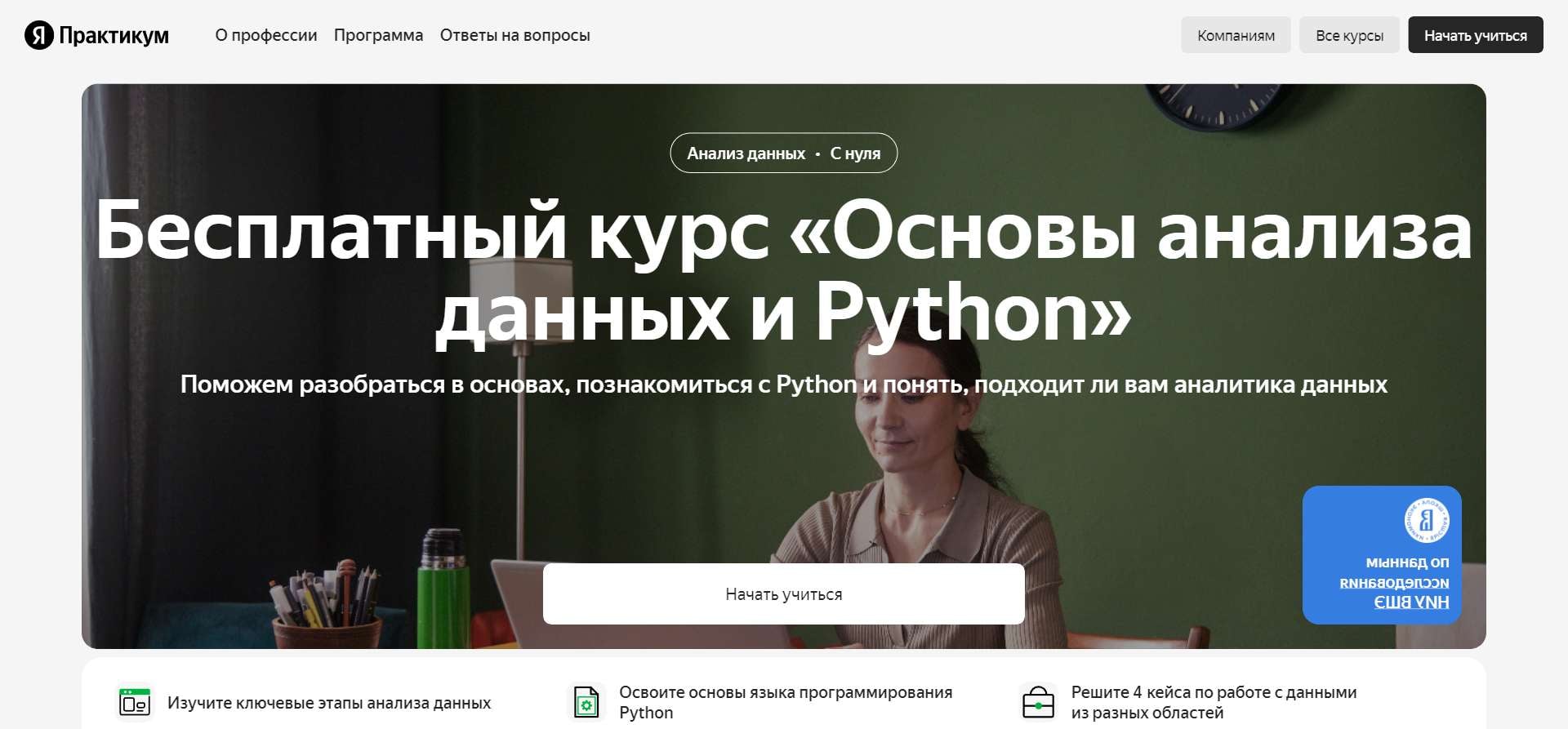 Этот бесплатный курс предоставляет отличную возможность для тех, кто только начинает свой путь в области анализа данных и программирования на Python. Программа обучения структурирована так, чтобы дать студентам необходимые знания и практический опыт.