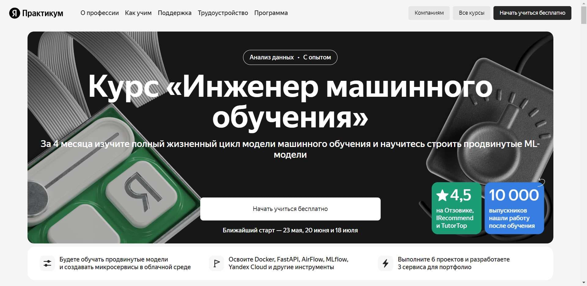 Ценность и эффективность: В целом, курс "Инженер машинного обучения" от Яндекс Практикум представляет собой ценный ресурс для всех, кто стремится стать экспертом в области машинного обучения. Эффективная методика обучения, практическая направленность и поддержка со стороны опытных специалистов делают этот курс превосходным выбором для тех, кто стремится к успеху в этой сфере.