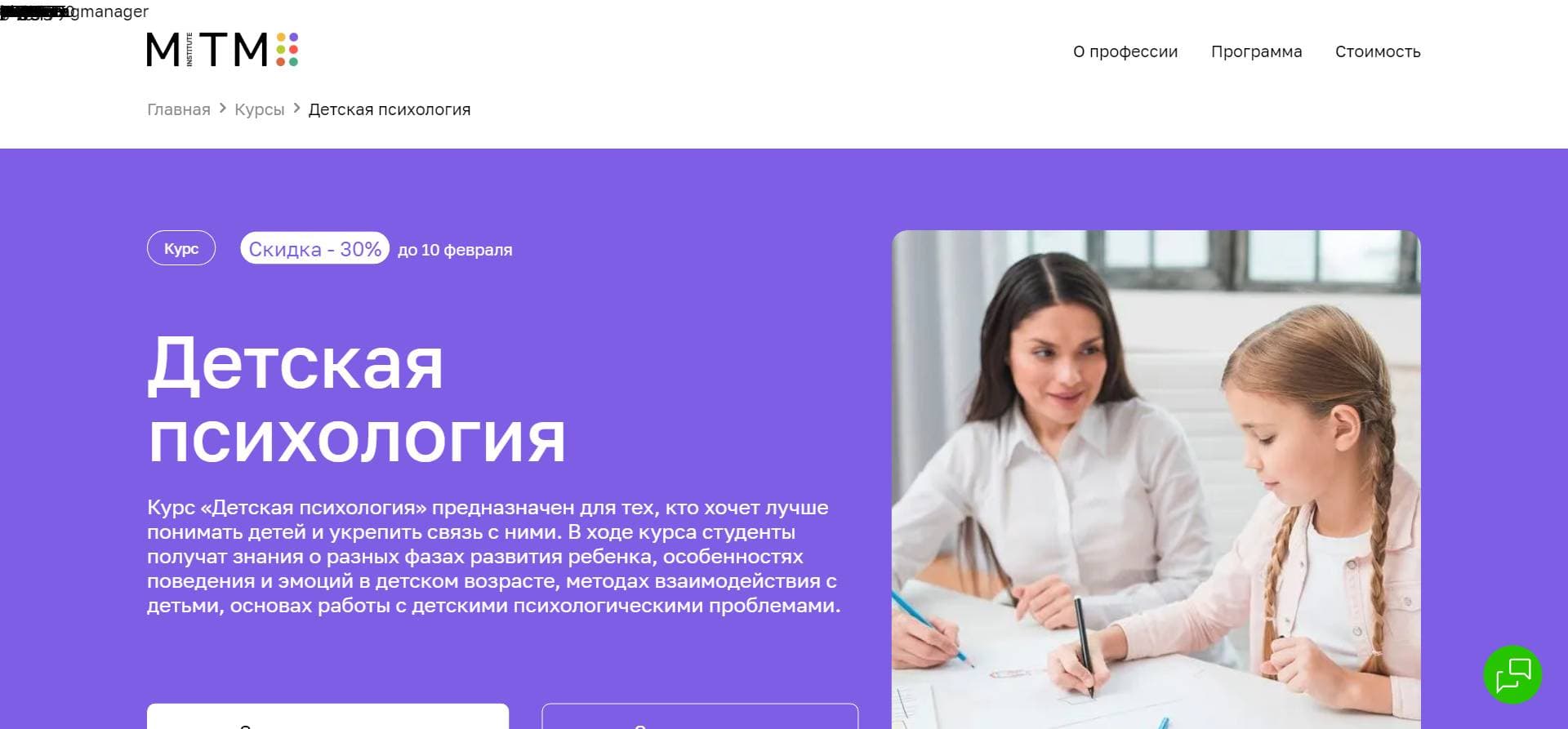 Уникальность программы заключается не только в ее доступности, но и в возможности получить скидку 30%, что делает обучение еще более привлекательным. Погрузитесь в увлекательный мир детской психологии вместе с лучшими экспертами-практиками и раскройте новые горизонты в понимании детей и себя.