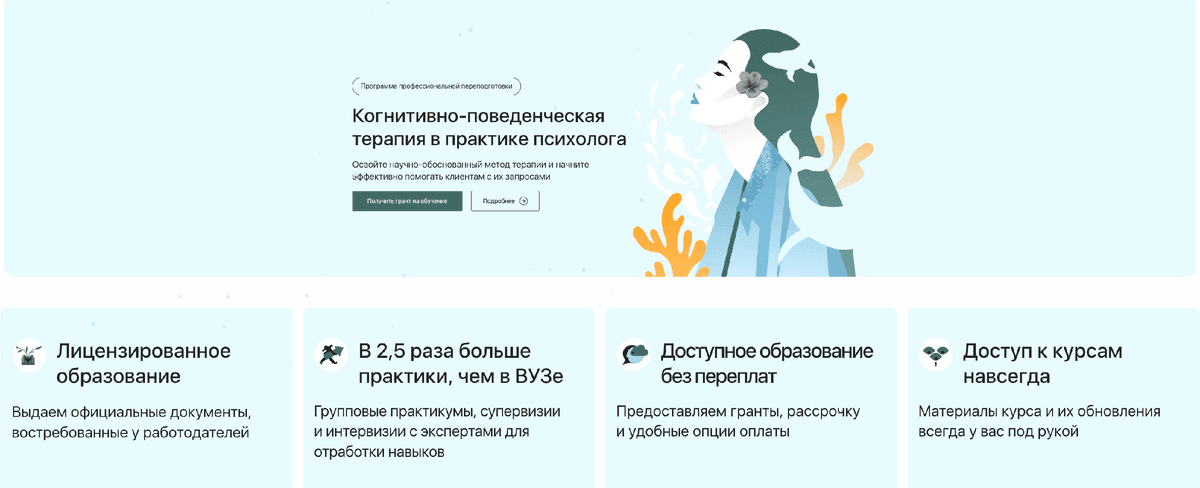 - Возможность развить навыки в двух направлениях: психотерапия и бизнес