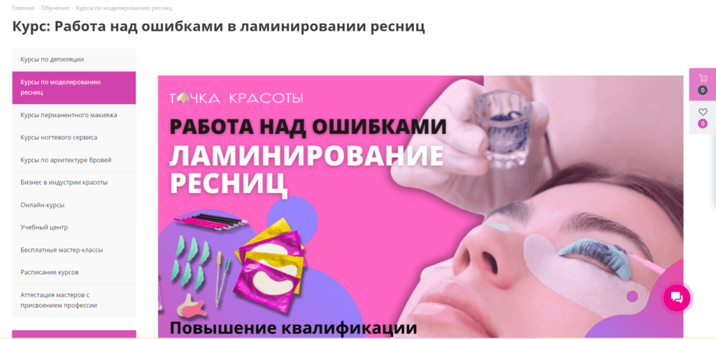 - Ссылка на программу: https://tochka-krasoty.com/obuchenie/kurs-modelirovanie-resnits/kurs-rabota-nad-oshibkami-v-laminirovanii-resnits