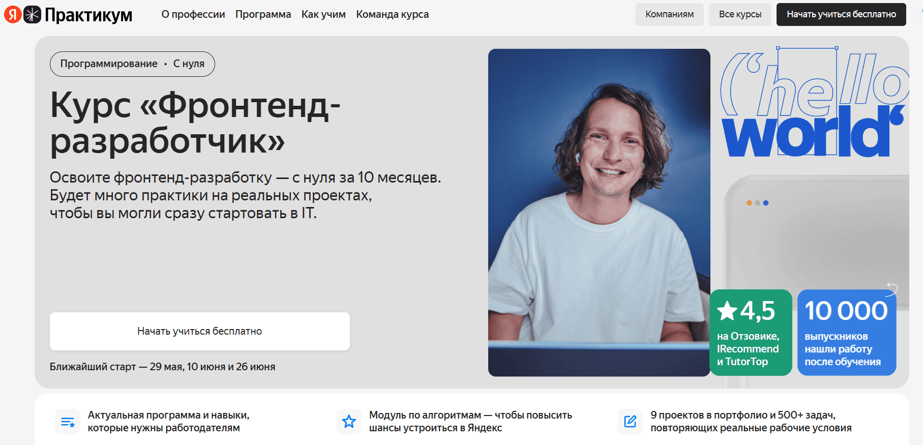 - ТОП 1. Курс «Фронтенд-разработчик» — Яндекс Практикум