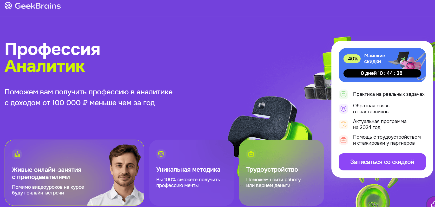 Здесь можно получить дополнительную скидку 5% по промокоду promokodinet.Познакомиться с курсом от Karpov Courses