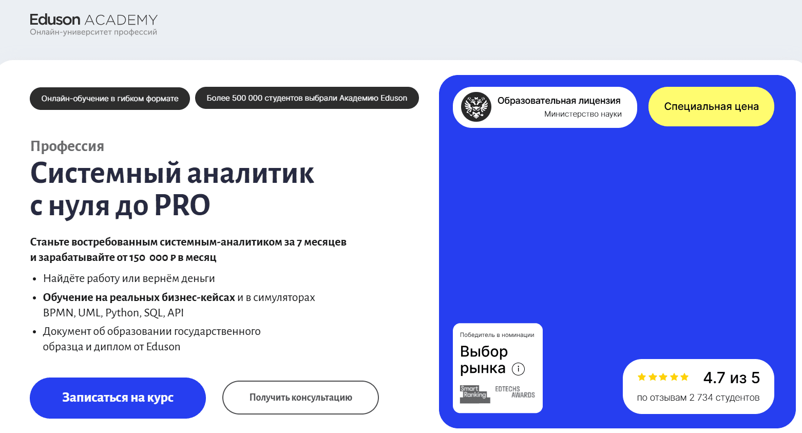 ТОП 4. Системный аналитик с нуля до PRO Eduson Academy