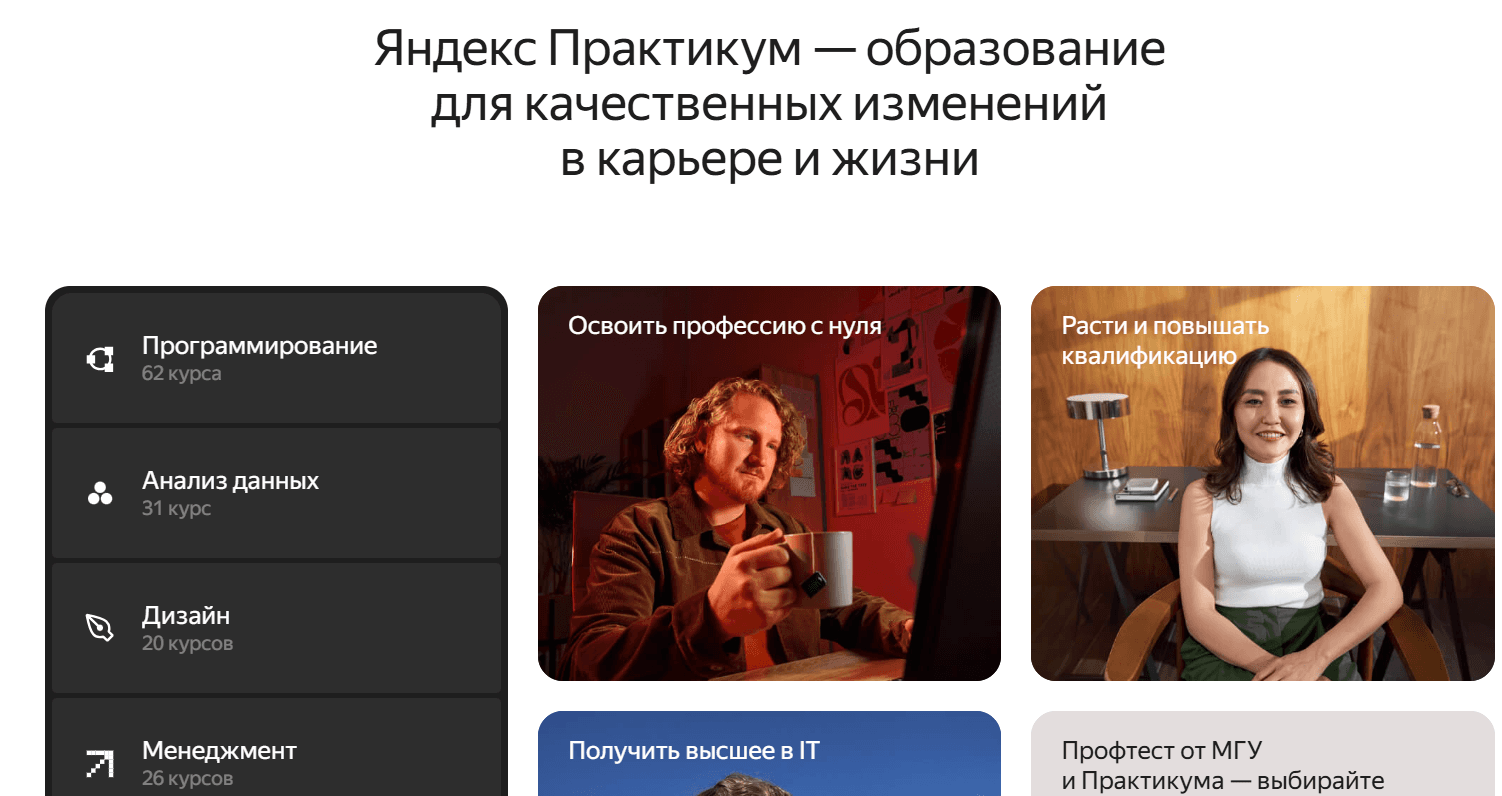 - Цена и варианты оплаты. Обратите внимание, что входит в стоимость и какие есть варианты оплаты (например, рассрочка, как у Яндекс Практикум). Акции и скидки могут быть полезны, но не делайте цену основным критерием.