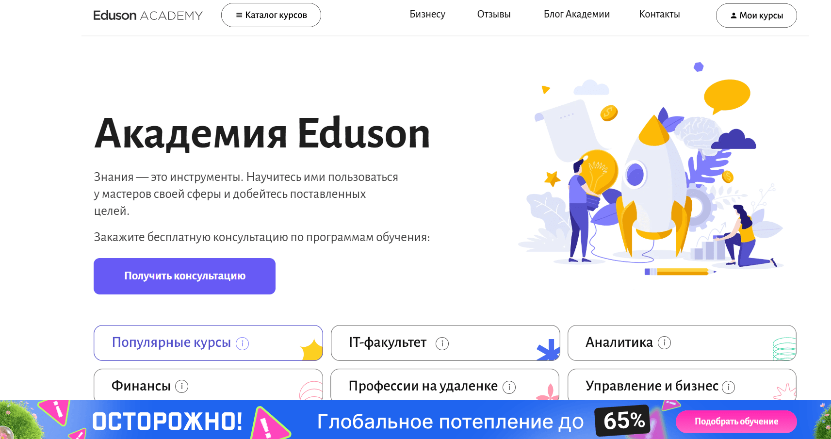 - У меня есть промокод: приобретите любой курс от Академии Eduson со скидкой 65% по промокоду ЛИТРЕС.