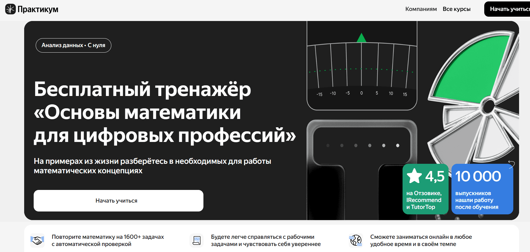 ТОП 1. Бесплатный тренажёр «Основы математики для цифровых профессий» – Яндекс Практикум