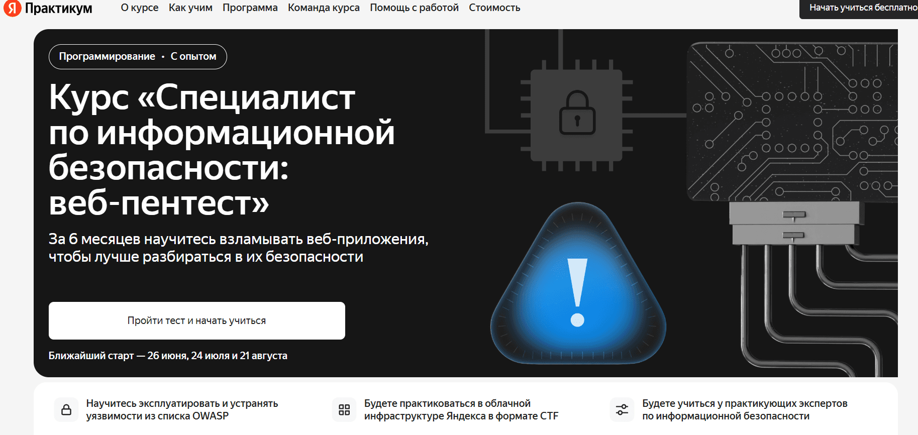 После тщательного анализа множества курсов, я остановила свой выбор на Курсе «Специалист по информационной безопасности: веб-пентест» — базовый от Яндекс Практикум Казахстан. Почему именно этот курс оказался для меня лучшим вариантом?