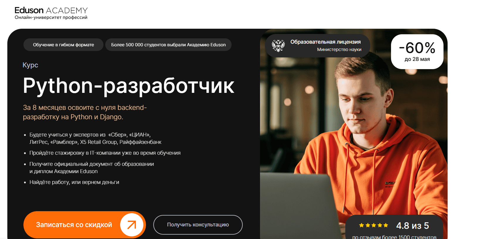 - Подробнее о курсе «Python-разработчик с нуля» от Eduson Academy