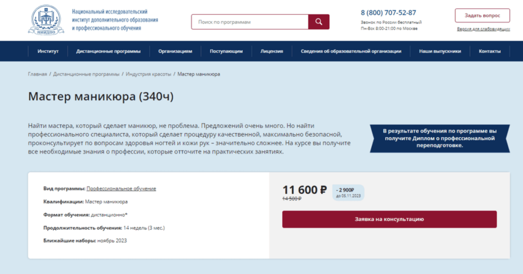 ТОП-1 🏆«Мастер маникюра» (340 ч) от НИИДПО