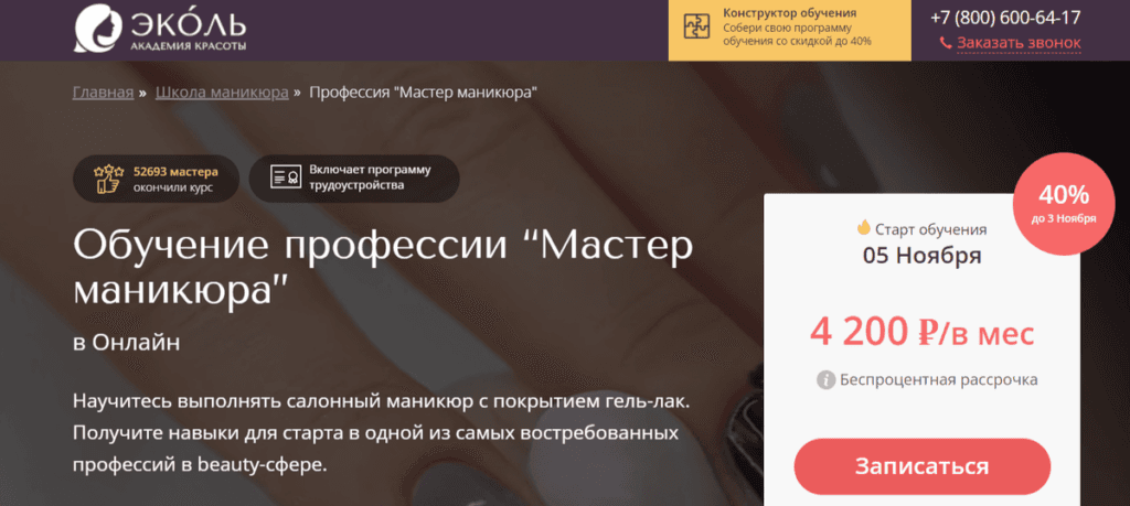 ТОП-3 🏆 Обучение профессии «Мастер маникюра» онлайн от Эколь СПб