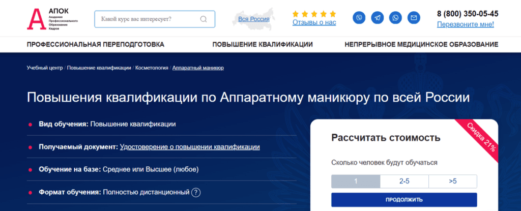 Курс по аппаратному маникюру от учебного центра АПОК — это комплексное дистанционное обучение, которое позволит вам овладеть современными методиками работы с аппаратами для маникюра и педикюра. Вы получите актуальные знания и навыки, а также удостоверение о повышении квалификации.