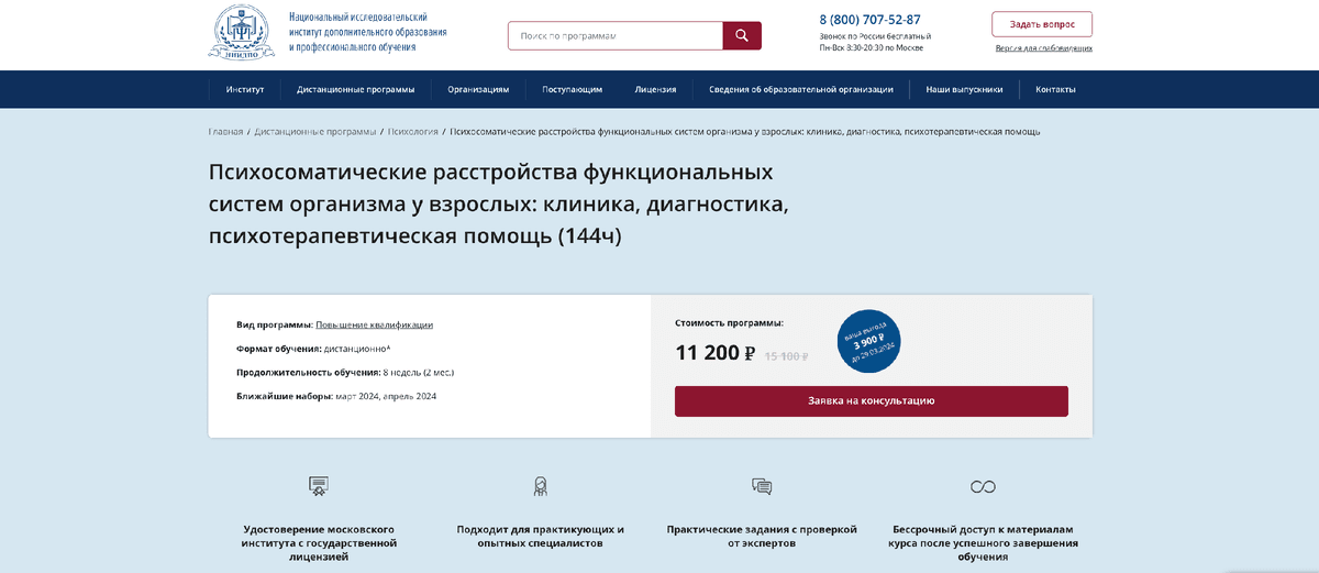 - Ссылка на программу: https://niidpo.ru/seminar/psihosomaticheskie-rasstrojstva-144-chasa
