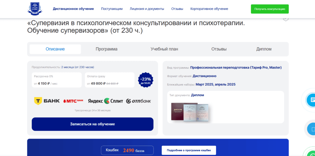 - Ссылка на программу: https://mip.institute/practical-training/supervision
