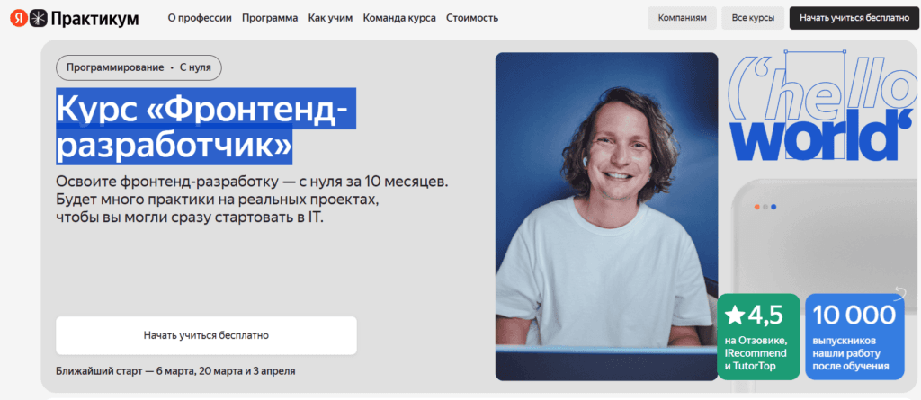 ТОП-1 Курс «Фронтенд-разработчик» от Яндекс Практикума