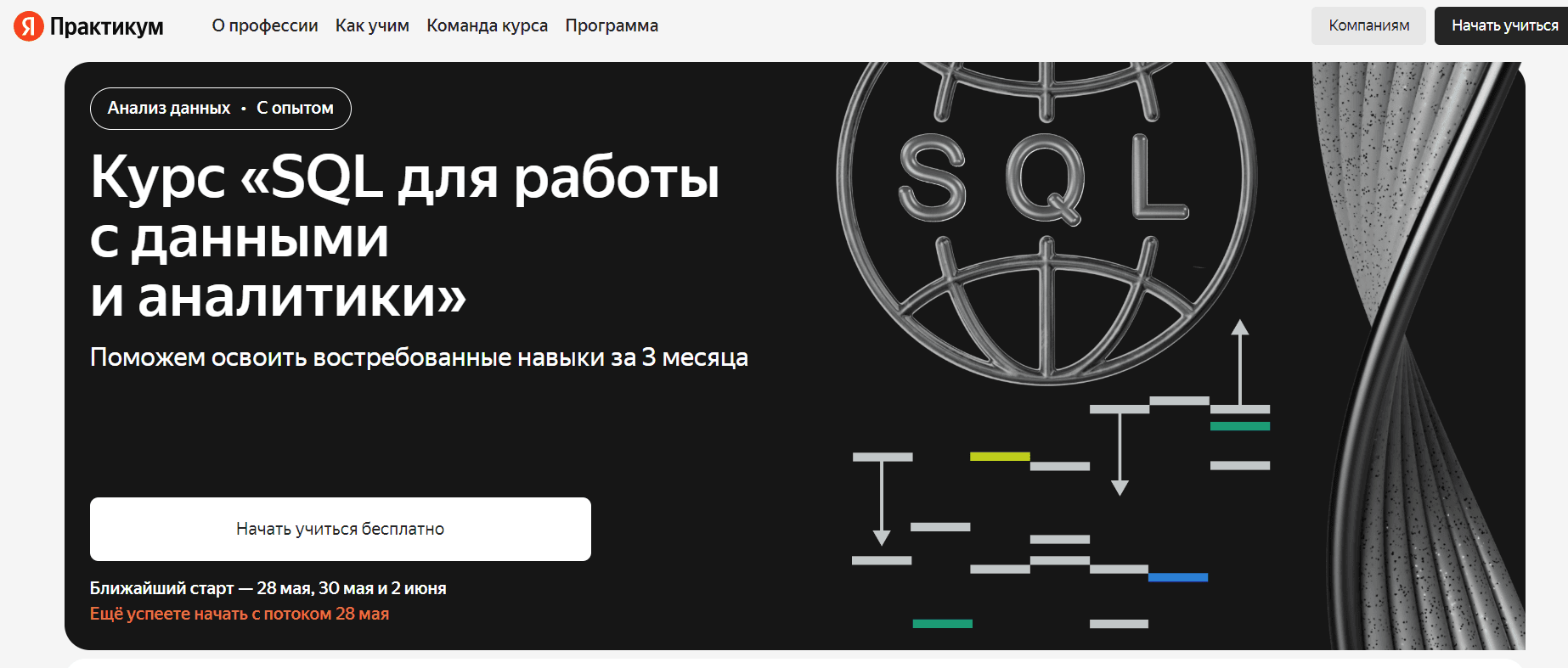 ТОП 1. Курс «SQL для работы с данными и аналитики» – Яндекс Практикум Казахстан